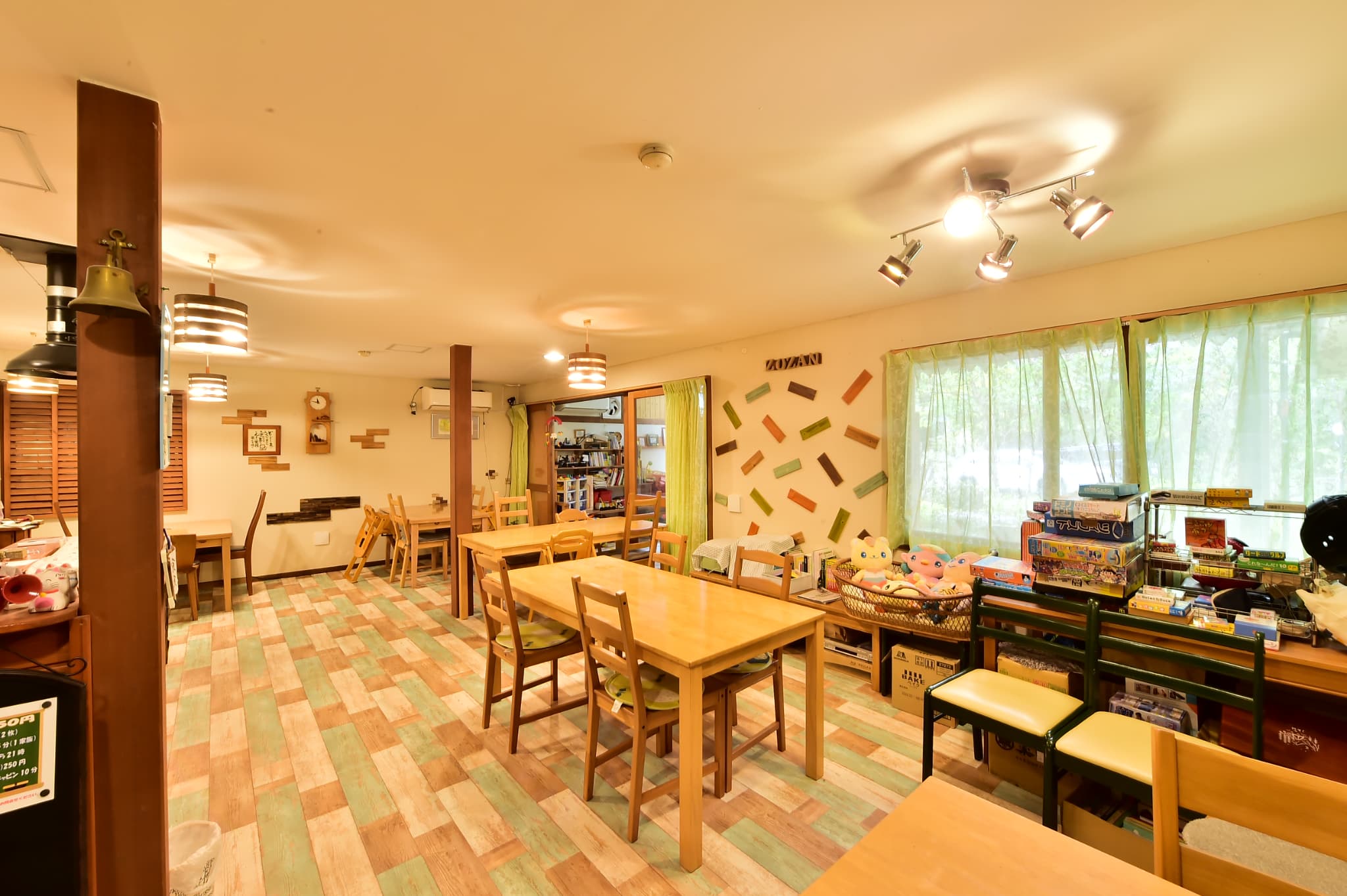 自然光が差し込む広々としたダイニングスペースで、